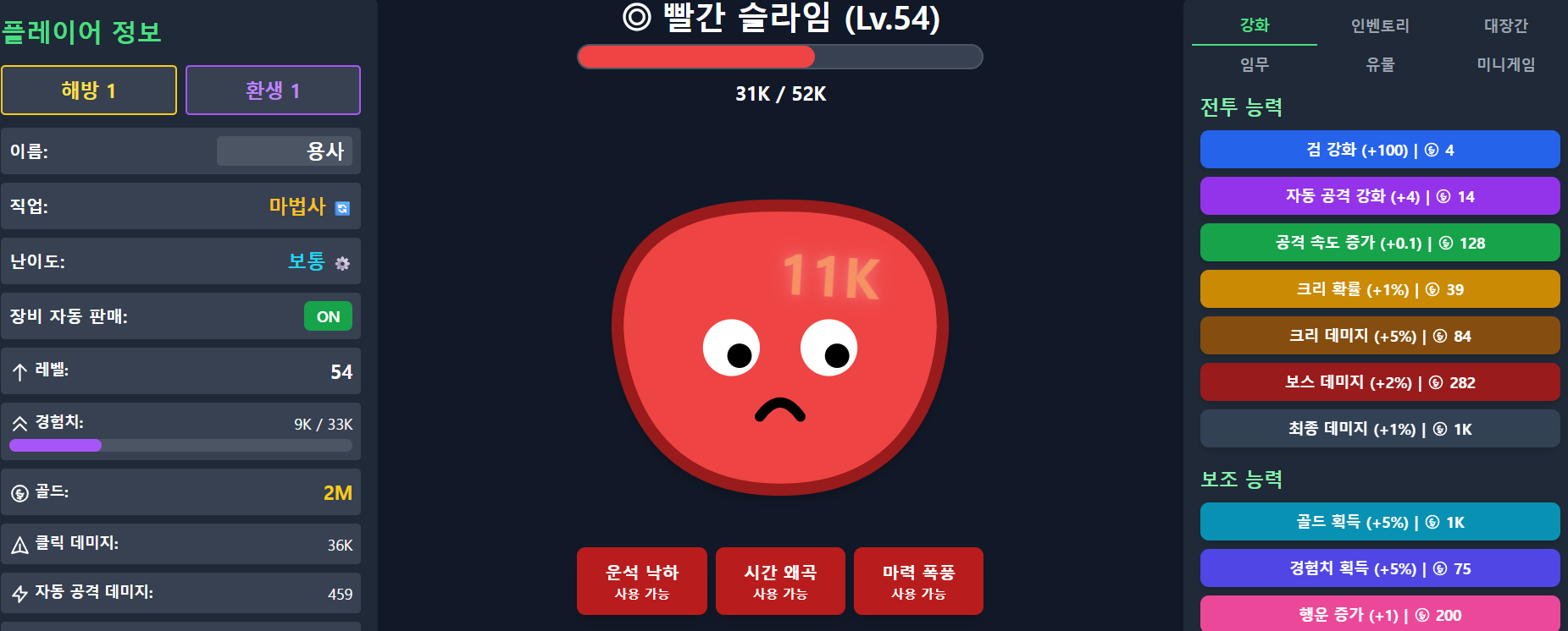 슬라임을 마구누르고 강화 시키세요!